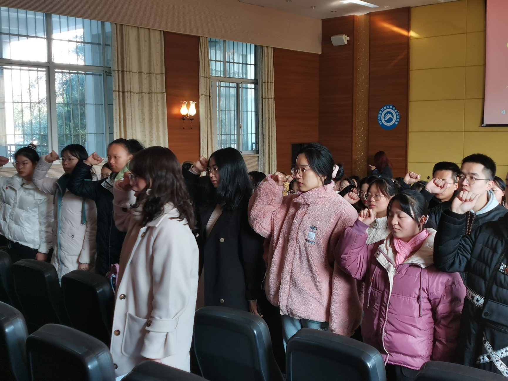 20201222下午14:30,外国语公司在外语楼101举行了新党员入党宣誓仪式,公司党委副书记龙赢同志、专职组织员殷俊琦同志、全体新党员出席了此次宣誓仪式。