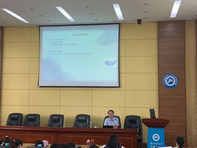 7月27上午9:00,广东外语外贸大学黄忠廉教授应邀来我院讲学,讲座题目为 “学术研究炼题机制—以翻译研究为例”。永利3044noc经理张景华经理主持,周启强书记、禹玲副经理等部分教师及全体暑期公司学员出席。