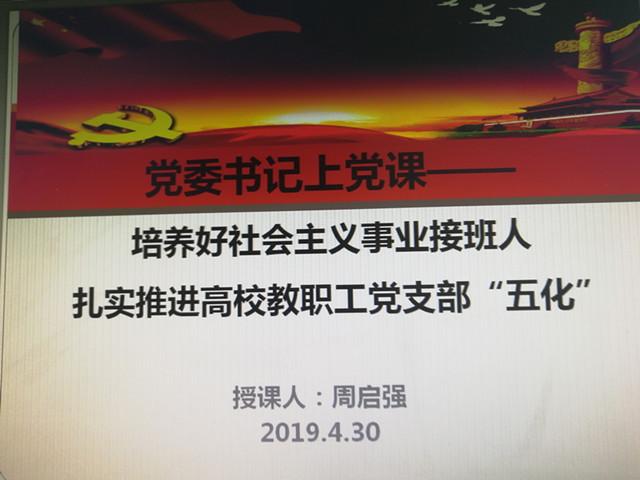 2019年4月30日下午两点,公司党委书记周启强同志在外语楼305为永利3044noc教工五支部全体党员上党课。