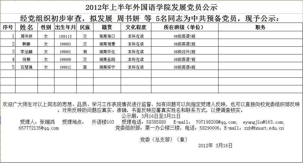 2012年上半年永利3044noc发展党员公示