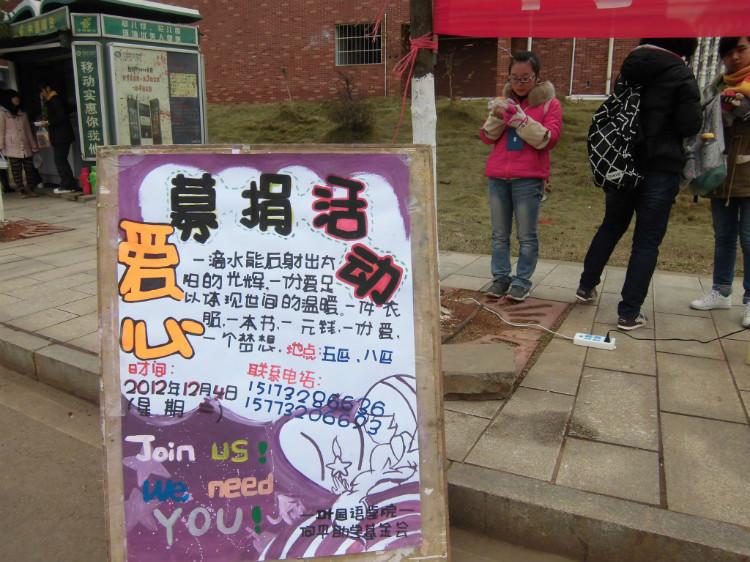 “同学们,请暂留你们的脚步,用你们的爱心温暖这个冬天······”人力资源部的委员们充满爱的“呐喊”吸引了过往同学的注意,她们别出心裁的集体合唱更是唤醒了人们内心的善意。在得知是为何平助学基金会募捐的时候,同学们都纷纷捐出了自己的零用钱,数额虽小,但爱心无限。还有一个路过的学姐则与几个室友急忙回寝室拎出了两大包衣服拿来捐赠,她们没有留下名字,却留下了她们满满的爱。