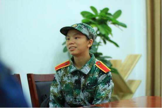 一个失落的身影静坐在永利3044noc值班台前,望着训练场上整齐有序的方队,脸上是藏不住的向往和遗憾。她是英语师范定向一班的黄宇,一个因暑假受伤而无法参加军训的女生。她曾有机会陪同探望老兵,期间深深被军人身上的爱国情怀和深沉坚守所打动,又长期受家庭成员的相关熏陶,一直以来就有个军人梦,对大学军训有热切的向往和期待。