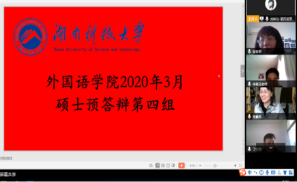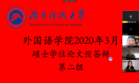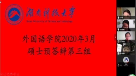 参加此次硕士学位论文预答辩的研究生有外国语言文学15人、学科英语方向58人。答辩分为五个小组,线上答辩使用“腾讯会议”视频软件。2020年3月14日、15日,永利3044noc全程按照现场预答辩流程举行线上答辩,整个答辩历程规范合理、视频全程无卡顿、声音清晰、节奏顺畅。答辩秘书做好了过程的视频录制以及现场截图保留资料。