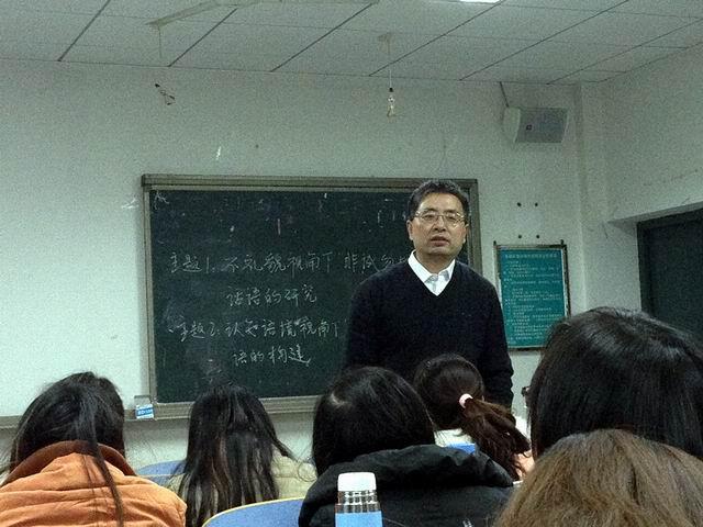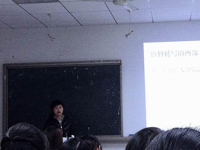 陈正红同学做了题为“不礼貌视角下‘非诚勿扰’话语的研究”的讲座。她首先简明扼要地介绍了论文的结构,然后从多个方面阐述了语料的收集和转写过程。理论视角新颖独特,