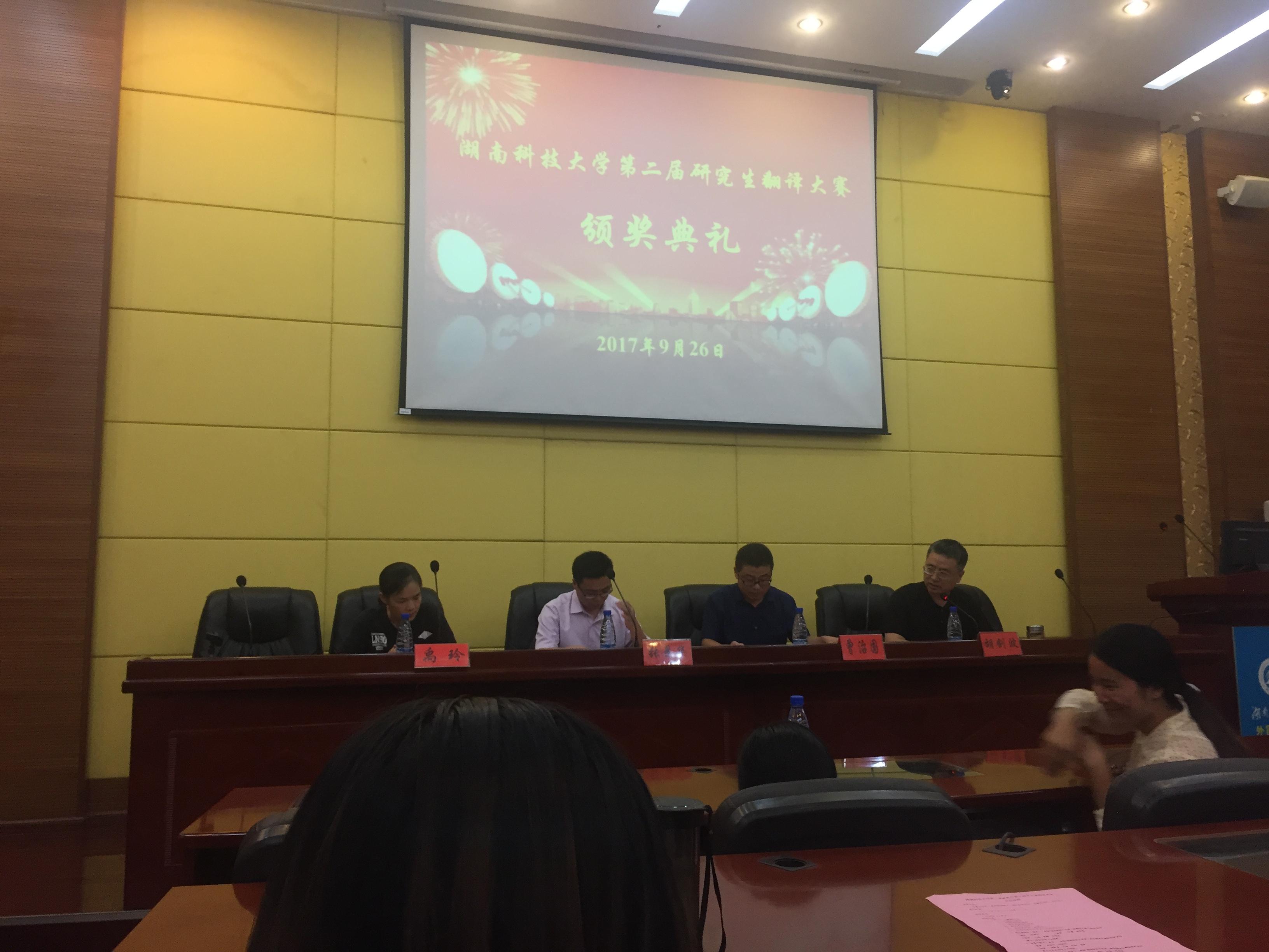 9月26日晚7点半,永利3044noc第二届研究生英语翻译大赛颁奖典礼于外语楼101会议室隆重举行。永利3044noc经理张景华教授、永利3044noc副经理胡剑波教授、研究生院工作部副部长曾治国、大赛阅卷组导师代表禹玲博士受邀出席,永利3044noc全体研究生以及其他公司获奖选手参加了本次颁奖典礼。颁奖典礼由永利3044noc副经理胡剑波教授主持。