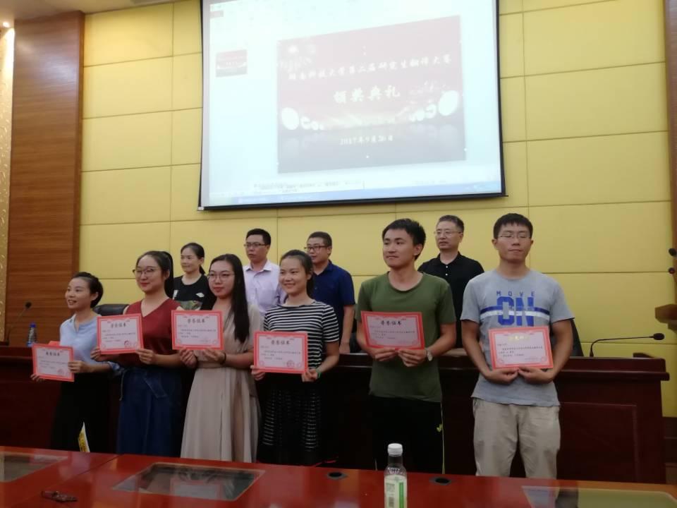 接着,大赛选手代表肖史洁发表获奖感言,并就自己的翻译实践,给在座的研究生分享了自己的经验。随后嘉宾们宣布了获奖者名单并颁发证书。
