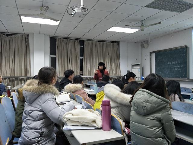 月26日晚19:00,本学期最后一次学术报告会于外语楼411举行,肖英、吴思霞两位同学为主报告人,参加本次学术报告会的有凌建娥博士,外院18级全体研究生及17级部分研究生。