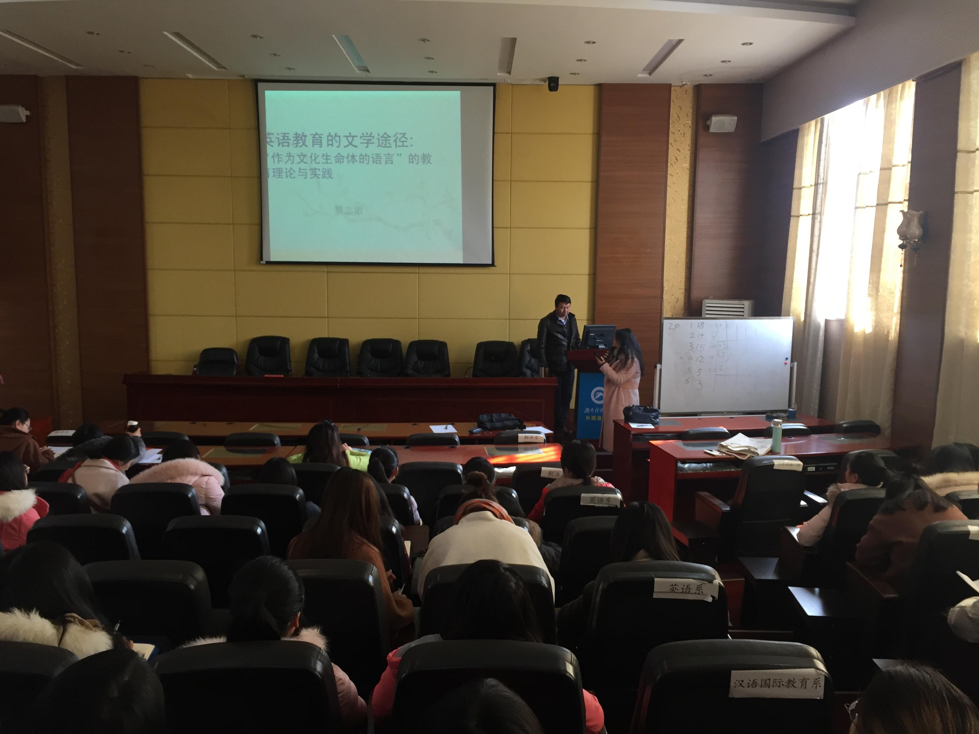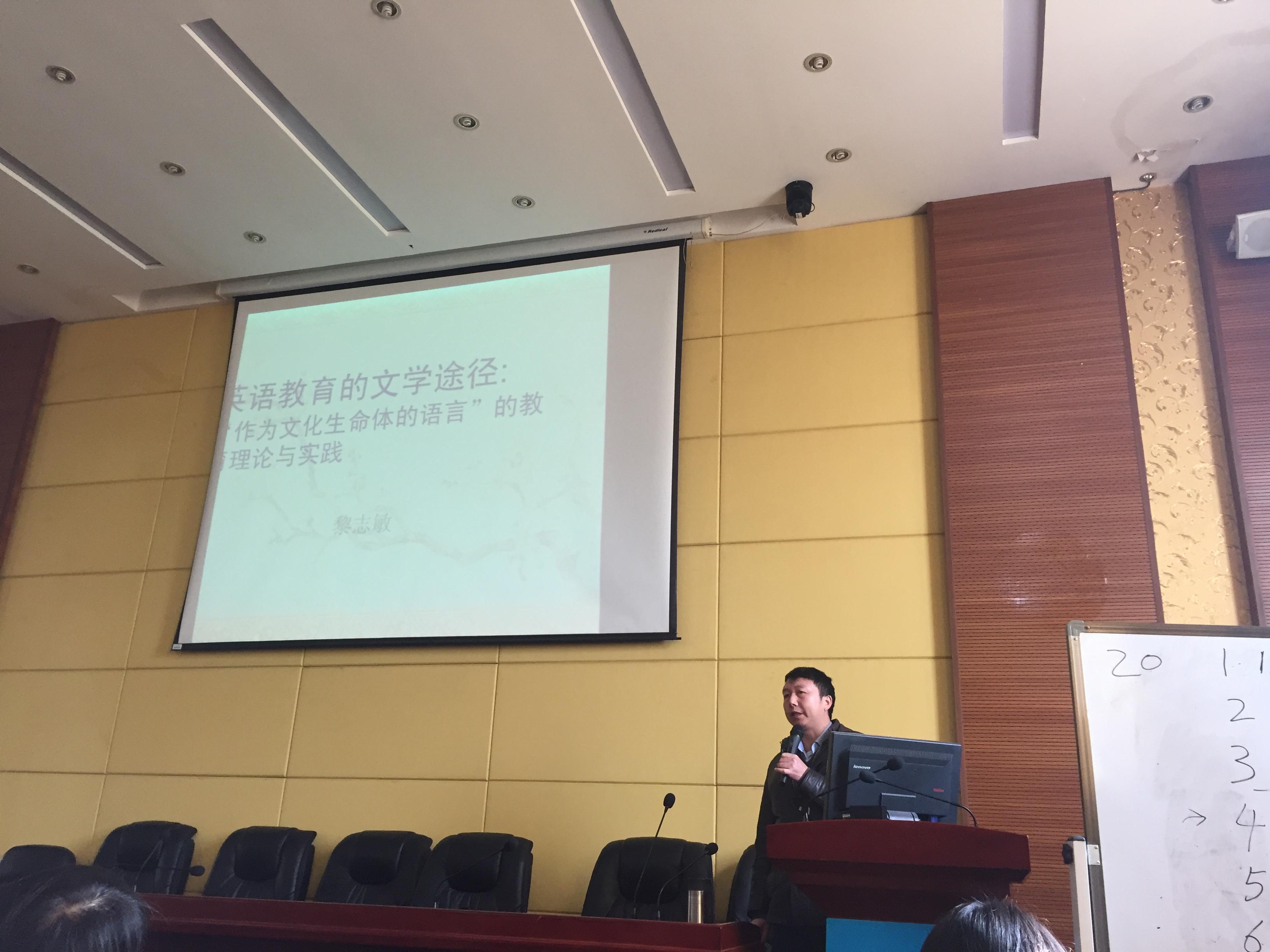 1月10日上午10:00-11:40,广州大学永利3044noc学术委员会主任,外国文学方向学术带头人黎志敏教授应公司邀请于外院101会议室作了一场题为“英语教育的文学途径”的学术讲座。此次讲座由永利3044noc李玥博士主持。