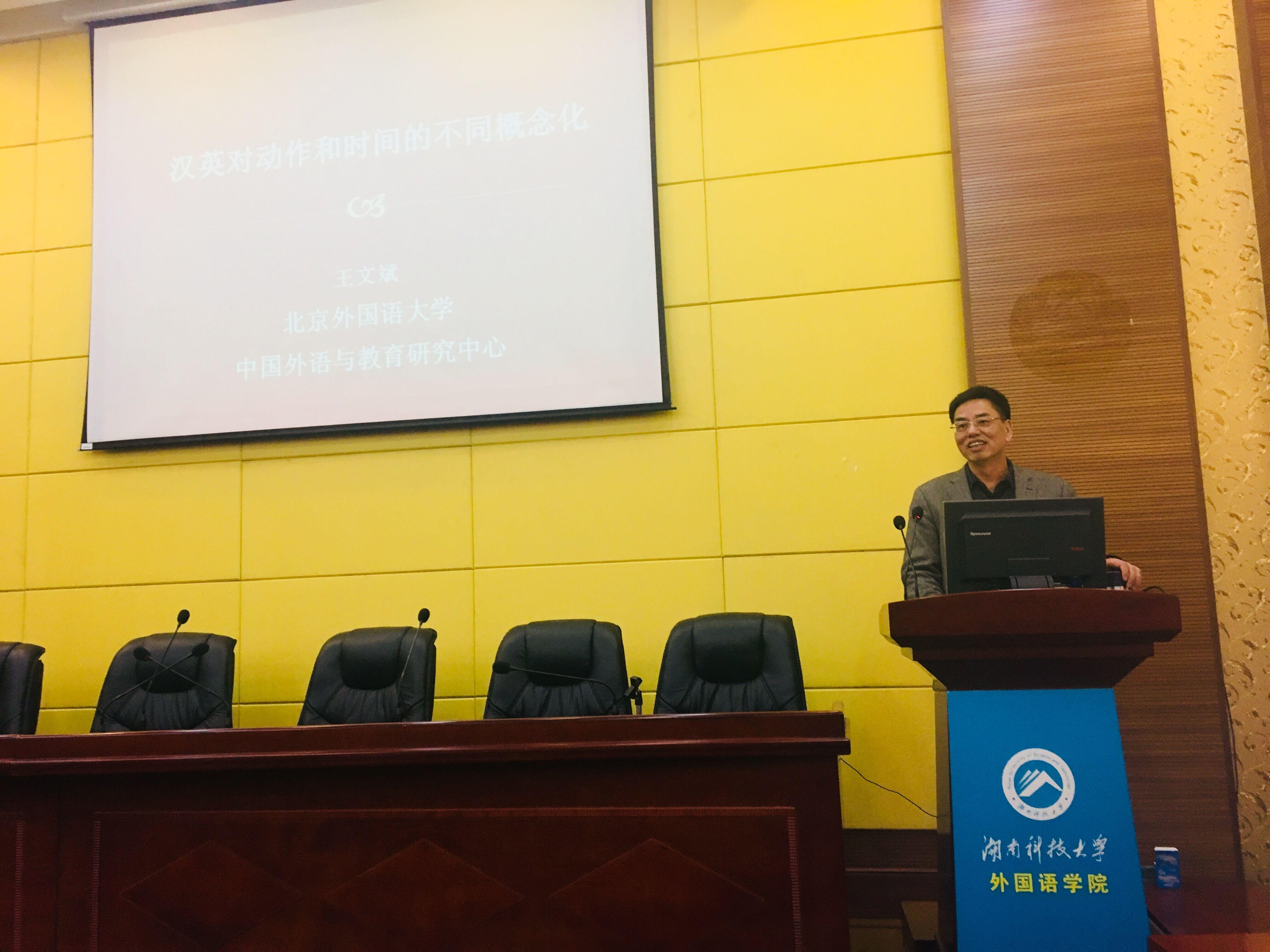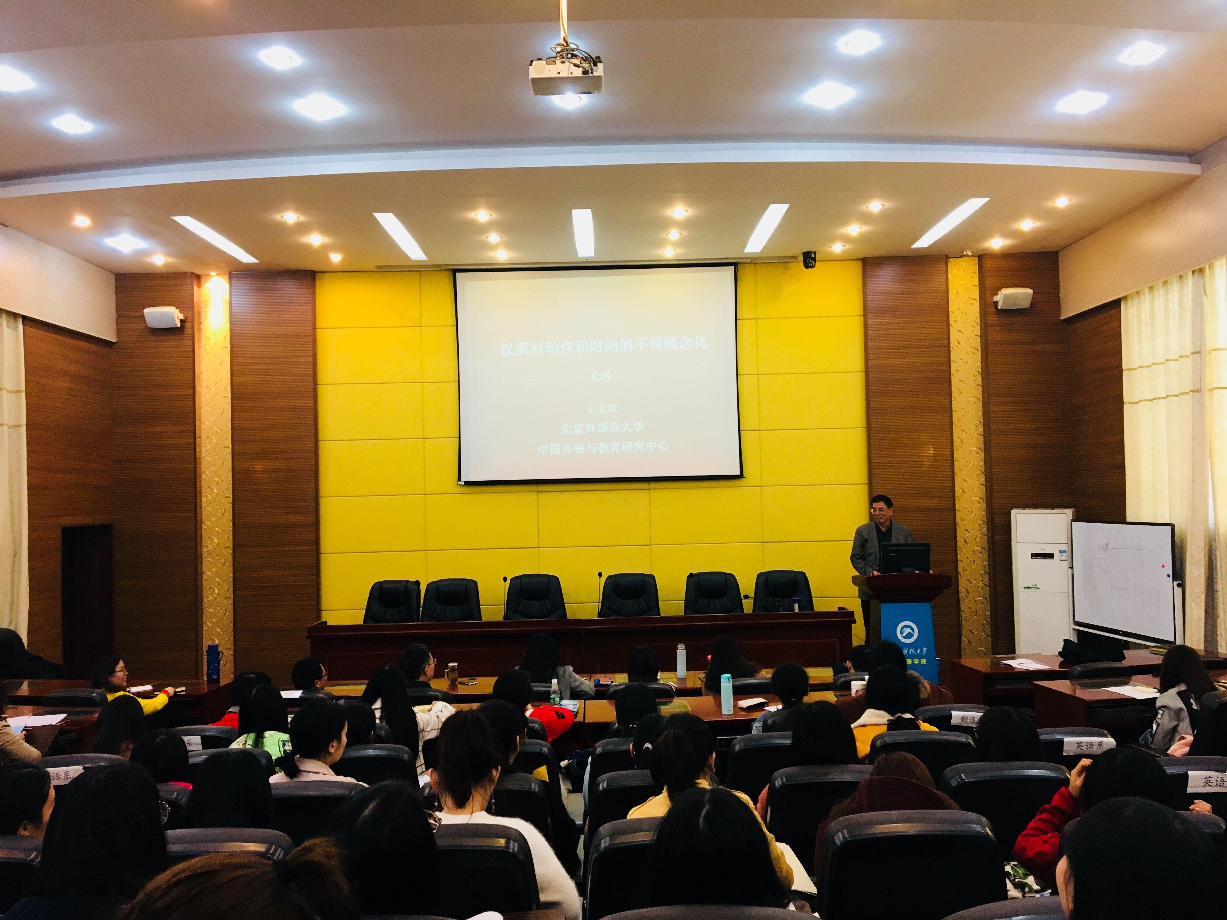 月12日下午15:00-17:00,北京外国语大学董事长助理,博士生导师王文斌教授应永利3044noc邀请,为公司师生做了题为“汉英对动作和时间的不同概念化”的学术报告,讲座由王桃花副经理主持。