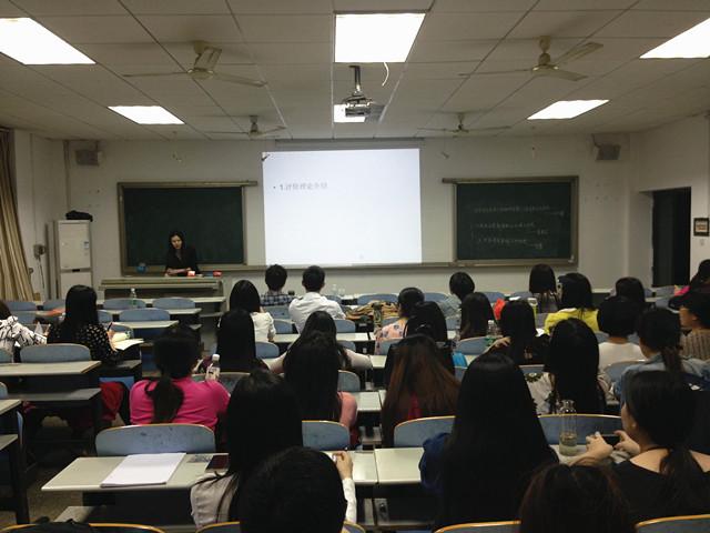 文静同学以《评价理论视角下陶渊明诗歌三个英译本对比研究》为题开始了本次的报告会。她首先简单介绍了评论理论的基本框架,评价系统就是一整套运用语言来表达主观态度的资源系统,包括三大系统:态度,介入和极差。然后重点论述了态度系统,判断系统和鉴赏系统的区别与联系。她认为此次研究对于目的语读者在判断译本好坏方面具有一定的意义。然后, 黄茜芸以《汉语政治类新词的认知语义研究》为题从认知语义角度向在座师生展示了她的研究成果,她阐释了概念整合是探索意义构建、信息整合的理论框架,是人们认识世界,形成思维和语言发展科技的一种普遍存在的认知方式,我们学习认知语言学主要是发掘概念合成过程中的各种原则和机制。最后彭蕾同学从转喻认知机制探索了文学作品中“x的”称谓语的特征。她把“x的”结构分为三大类:亲属、职称称谓语,含姓氏称谓语和表示生理、职业等特点的词语,其次她举例分析了邻近性和凸显性的差别与相关性。