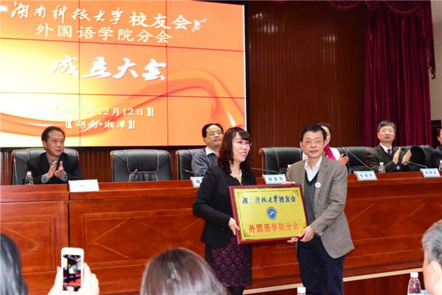 会上,副董事长陈安华教授对外院员工分会的成立表示了热烈的祝贺,对员工分会的筹备与成立所做的工作予以了充分的肯定,并希望员工们多回家看看,为母校的发展献计献策。员工代表向春明致辞,他对母校的培养和教育表示感谢,说道“谢谢你们叫我回家,岁月可带走年华,却带不走对母校的眷恋。”员工分会新当选会长曾艳钰教授致辞,她简要介绍了外院的发展建设情况,强调了员工会的意义,并表示会认真、努力地做好员工会工作,为员工会的建设和发展服好务。此外,员工分会与阿里公司代表签署了跨境电商人才培养基地合作协议并进行了现场授牌。原湘潭师范公司9153班员工、美国高盛投资集团龚海燕女士设立了“9153海燕奖学金”、原湘潭师范公司9654班员工毛林代表广东员工也设立了奖助基金,并进行了现场捐赠。