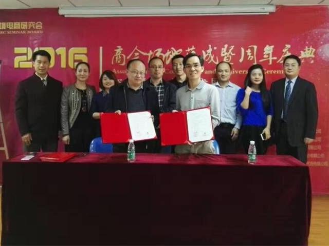 永利3044noc周启强书记、跨境电商研究会黄越会长代表合作双方在文本上签字