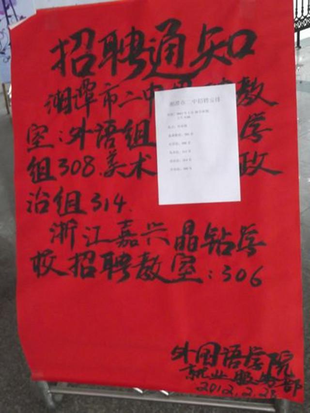 2月28日上午9点,湘潭市第二中学、浙江嘉兴晶钻公司在永利3044noc举行了招聘会,招聘外语、美术、政治等科目的教师。本次招聘,不仅是对员工的专业知识的有力检验,更是对应聘者综合素质的考验。招聘方根据不同科目的特性,对应聘者提出了不同的要求。如:外语组招聘要求员工现场备课,然后进行试讲,最终根据应聘者对课堂的整体把握和与员工的互动交流情况进行评选;美术组则让员工现场用粉笔作画,考验员工的绘画功底。尽管主考官们“百般刁难”,应聘者依然镇定自若,应付自如。
