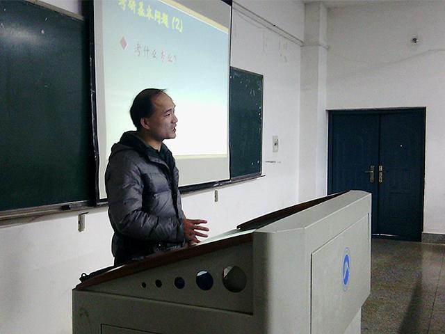 杨江老师从事教学工作多年,身为研究生导师,对考研了解颇深。讲座期间,杨老师首先就考研的四个基本问题为大家进行讲解,包括“考还是不考”、“考什么专业”、“如何择校”、“如何备考”等方面,并深入分析了考研的现状和理由,情理兼蓄,娓娓道来。杨江老师幽默的谈吐,博得现场雷鸣般的掌声,严肃的讲座现场成了一片欢乐的海洋。杨江老师更是用自己的教学经验举例说明择校、备考、应试的技巧,生动真实,为前来听讲座的学子上了珍贵的一课。