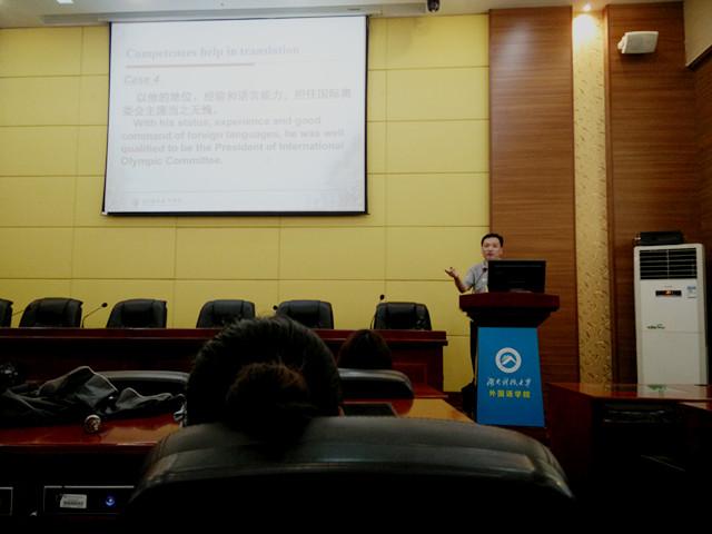 101室作了一场题为“翻译硕士的能力要求”的讲座,此次讲座由副经理张景华教授主持,外院经理曾艳钰教授、禹玲副教授、王桃花副教授、14、15级研究生及部分本科生到场聆听。