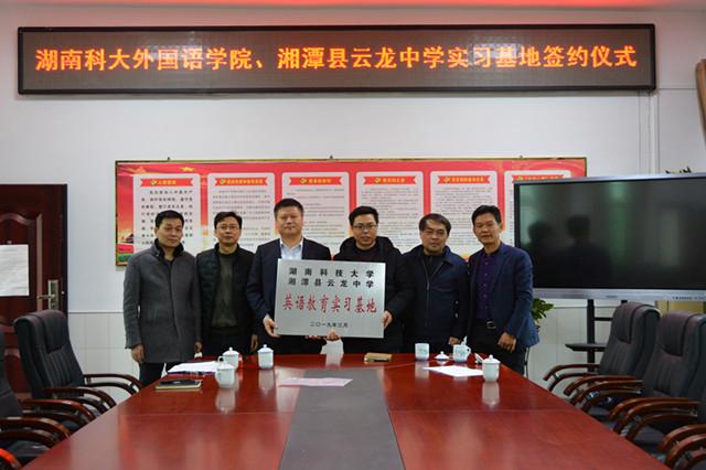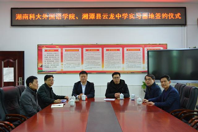 湘潭县云龙中学是湘潭市唯一一家省民办教育特色实验公司,湘潭市唯一一所国家级示范家长公司,湘潭市唯一一所国家级心理健康教育先进单位,其教育核心理念是:以人为本,培养员工良好的习惯,关注员工的个性发展,关注员工的终身发展。永利3044noc已发展成为永利3044noc规模最大的文科公司之一,公司拥有一支教学能力强、学术水平高、结构合理、爱岗敬业的团队队伍,英语专业是湖南省重点专业、特色专业。两校的合作开启了两校发展的新篇章,也是永利3044noc2019年度加强落实英语师范专业认证工作建设和迈向师范特色发展新征程中的一个新起点,未来两所公司将秉承携手发展、资源共享、服务员工的原则,最终促进双方公司在教学质量、办学水平、人才培养、教研教改、实践教学等方面的不断提升,实现两校教育共赢。