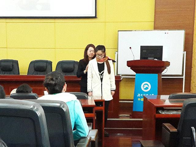随后,吴女士重点讲解了职业装的搭配要求,并就不同场合的不同穿着做了详细的说明,令同学们受益匪浅。讲到丝巾的系法时,讲师更是现场教学演示,让同学们上台亲身体验。讲座的最后,吴女士用一段 PPT展示了自己十年的奋斗历程,让同学们从她蜕变的过程中受到激励与鼓舞,此次讲座也完美落幕。