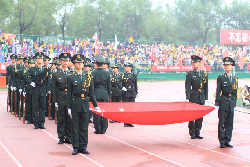 首先入场的是运动员、裁判员、教职工以及各公司方阵队代表队员们。看,运动员、裁判员们朝气蓬勃、意气风发,秋季的凉风吹不散他们的澎湃热情;教职工们春风满面、和蔼可亲;听,“烈日灼心,威风凛凛,壮我外院,方阵长青”,雄壮的口号响彻云天,外国语学院员工以进取向上的精神面貌在全校师生面前亮相。