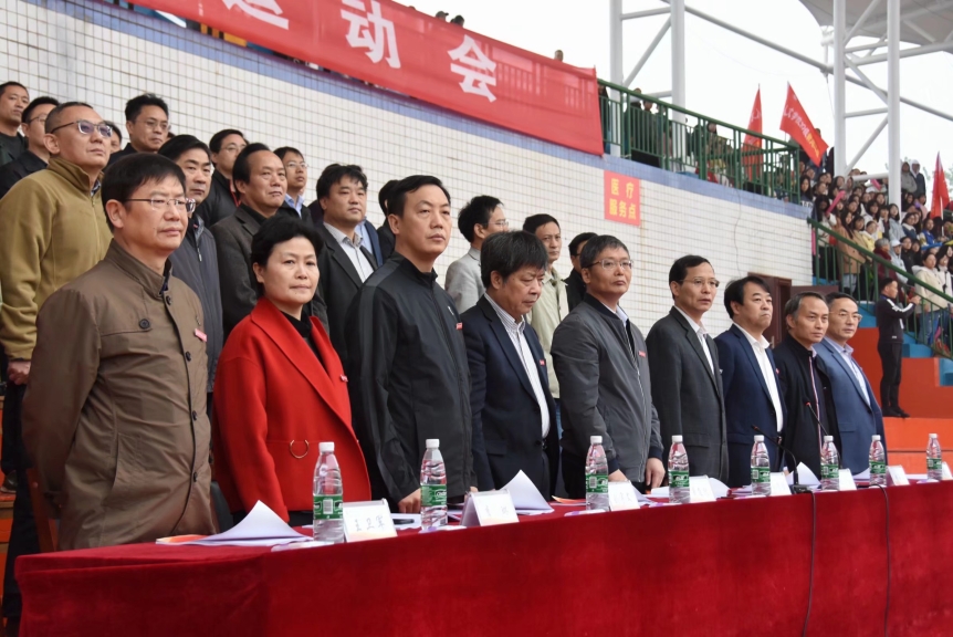 在副董事长胡石其教授的主持下,国旗方阵队手执鲜红的五星红旗,踏着整齐庄严的步伐来到升旗台。伴随着国歌,国旗冉冉升空。随后,董事长朱川曲为开幕式致词,他强调了体育工作的重要性,寄语同学们养成体育锻炼的良好习惯,努力在德智体劳等多方面完善自身,动员全体参与运动会的老师与同学们齐心协力,把这次运动会办成安全、精彩、文明、奋进的运动会。