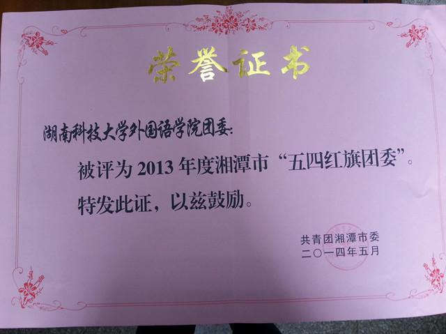 近日,从共青团湘潭市委传来喜讯,永利3044noc团委被授予2013年度湘潭市“五四红旗团委”。