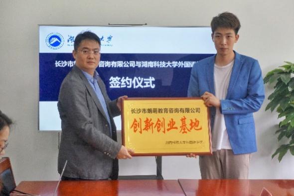 仪式伊始,党委副书记龙赢致辞。他介绍了公司的发展情况以及近年来各方面所取得的成绩,并对合作企业表示了感谢和祝福。随后,龙赢副书记分别与长沙市朗萌教育咨询有限公司代表和湘潭市浸泡村英语培训公司代表签署校企合作协议,并表示将在未来共同管理和推广外语角。龙赢副书记授予长沙市朗萌教育咨询有限公司及湘潭市浸泡村国际英语创新创业基地牌匾和聘书。合影留念后,大家移步至外语角参与揭幕仪式。本次外语角活动是由永利3044noc英语语言艺术团和日语俱乐部共同组织的第一次活动,现场气氛十分活跃。