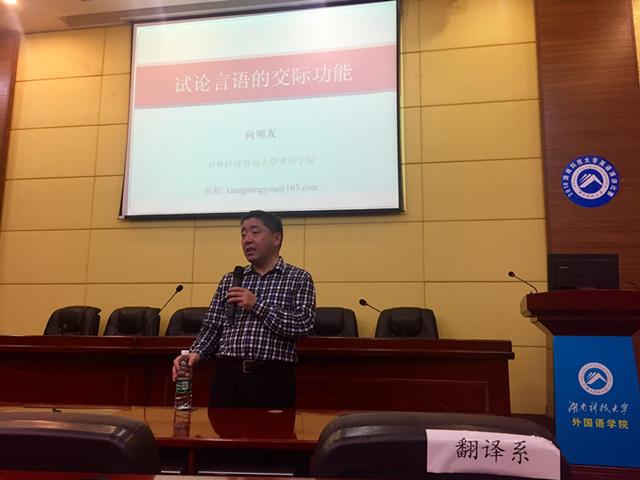 向明友教授作“试论言语的交际功能”主题学术讲座