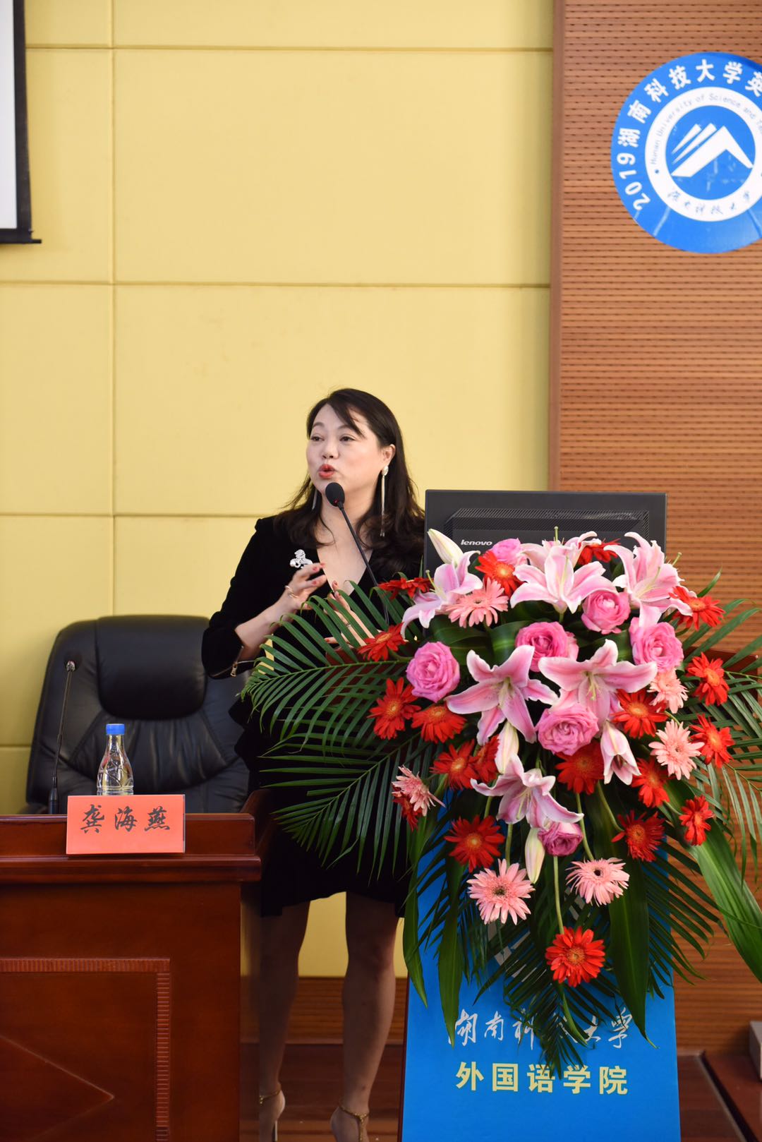 仪式结束后,龚女士为师生们作了题为“从科大到华尔街”的励志讲座,分享了她进入联合国做同传,为李克强总理、联合国秘书长潘基文、美国财长鲍威尔等国内外领导人与名人担任翻译,加入华尔街投行高盛公司,回国创业等经历。讲座现场气氛热烈,龚女士频频与员工互动,风趣幽默,平易近人。她传奇的人生让同学们深感震撼与钦佩,大家表示为拥有这样优秀又有责任担当的员工而感到自豪。