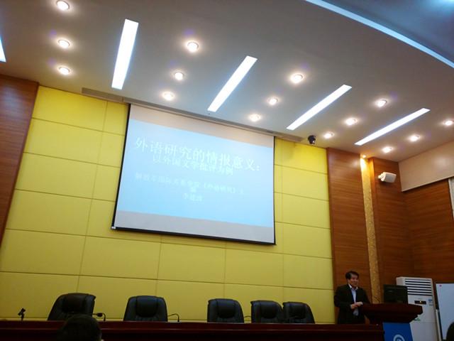 11月26日晚,应永利3044noc邀请,解放军国际关系公司李建波教授在外语楼101会议室作了一场题为“外语研究的情报意义:以外国文学批评为例”的专题讲座。讲座由永利3044noc副经理张景华教授主持。永利3044noc副经理胡建波教授和部分老师,以及研一、研二员工到场聆听了讲座。