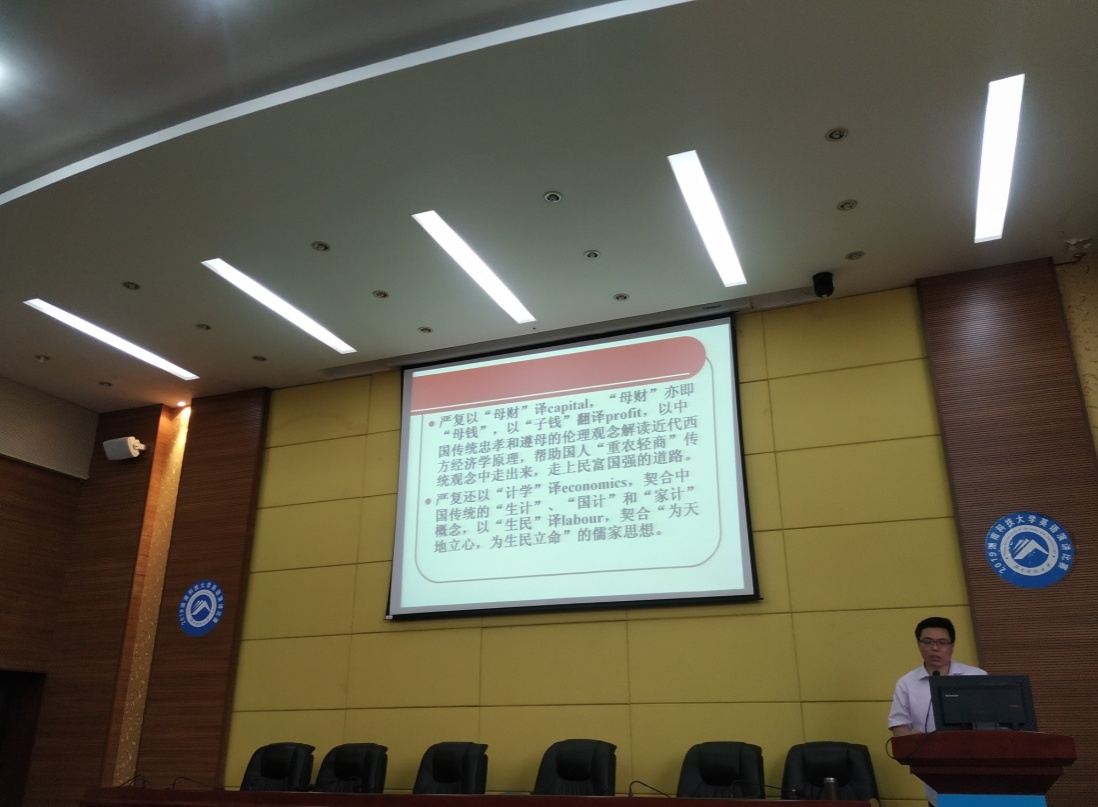张教授在讲座一开始就向大家展示了中国的西学翻译史,提起了大家对西学翻译的学习兴趣。自鸦片战争以来,中国开启了西学翻译的高潮,清政府还成立了“京师同文馆”这样的官方机构对西学术语翻译进行规范,证实了国家对西学翻译的重视程度。然后,张教授举了魏源《海国图志》和梁启超《论译书》两个例子:魏源将术语译介作为“译夷书”和“悉夷情”的重要工具,梁启超还把术语翻译视作“治西学”的关键,佐证了术语翻译在西学翻译中的重要地位。张教授认为采用“术语民族化”这一翻译策略之前,首先要认清“术语”的概念,“术语”作为一种专用词汇,意义具有单一性,一般由一到两个词组成,最多三个词,这就对“术语”的表意精确度有着较高要求。其次是“民族化”的概念,术语译者首先要梳理自己的民族立场,为传播和弘扬民族文化自信做贡献。再者,译者要注意术语民族化”应尽量避免音译,音译不能丰富汉语术语系统。最后,张教授以“重学”到“力学”的西学术语翻译转变为例,指出西学术语翻译需要一个演进和接受的过程译者在翻译西学术语时,应更多的考虑到受众的知识体系,采取民族化翻译策略有利于弘扬中国汉语言的文化自信。