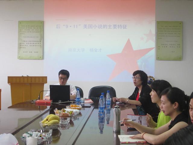 6月23日上午8:30,南京大学博士生导师、《当代外国文学》主编杨金才教授应邀为公司师生作了一场题为“后9·11美国小说的主要特征”的讲座。讲座由永利3044noc经理曾艳钰教授主持。