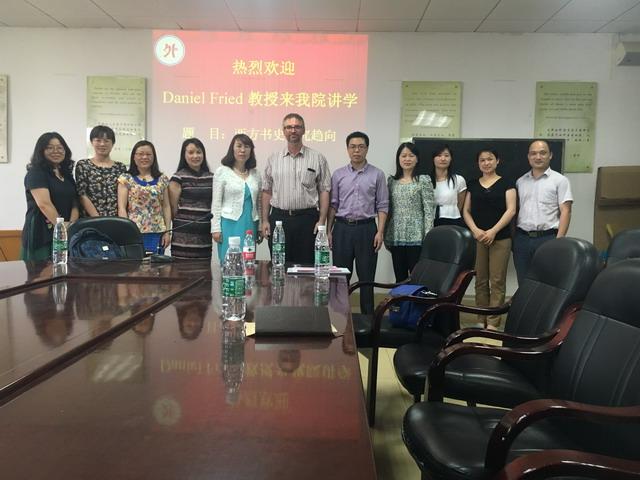 80年代,并简要阐述其发展渊源和发展历程;接着,傅教授重点介绍了80年代以来书史研究突破的两个新方向,即书籍的循环与阅读公众、印刷科技与印刷文化。其中,Daniel 就书籍的循环与阅读公众这一大方向中讨论了四个要点( 即考虑销售量,对读者的了解正面文学与畅销文学,宗教与通俗哲学)。然后,傅教授通过举例法,对印刷科技如何改变人的思想、科技与文本有何关系、手抄文本如何演变成印刷文本、文化语境和科技语境如何影响印刷文化等一系列相关问题作了详细的解答。在提问环节中,老师们和员工们纷纷提问,气氛活跃,大家收获颇多。