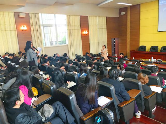 随后,汤大莎研究员以胡立博士的研究为例从选题、思路、调查、实践、表述五方面详细解析了关于教师进行教育规划项目申报的流程及需要注意的若干问题,并针对这些问题提出了精辟独到的建议。她表示标题是评审首先会关注的重点,因此一个好的标题需要下足功夫。另外,准确的定位自己、明确自己的目标、组建团队也是提升青年教师申报项目成功率的有效方法。汤大莎研究员的精彩解说使在座师生受益匪浅,引发了在座师生的热烈讨论,在座老师也就相关问题提出了自己的见解和疑问,并获得了汤大莎研究员和胡立博士的细致解答。