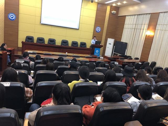 老师应邀来公司为学科英语及师范方向的同学做教学管理方面的指导,参加本次讲座的有英语师范专业的本科生及学科英语方向的研究生。