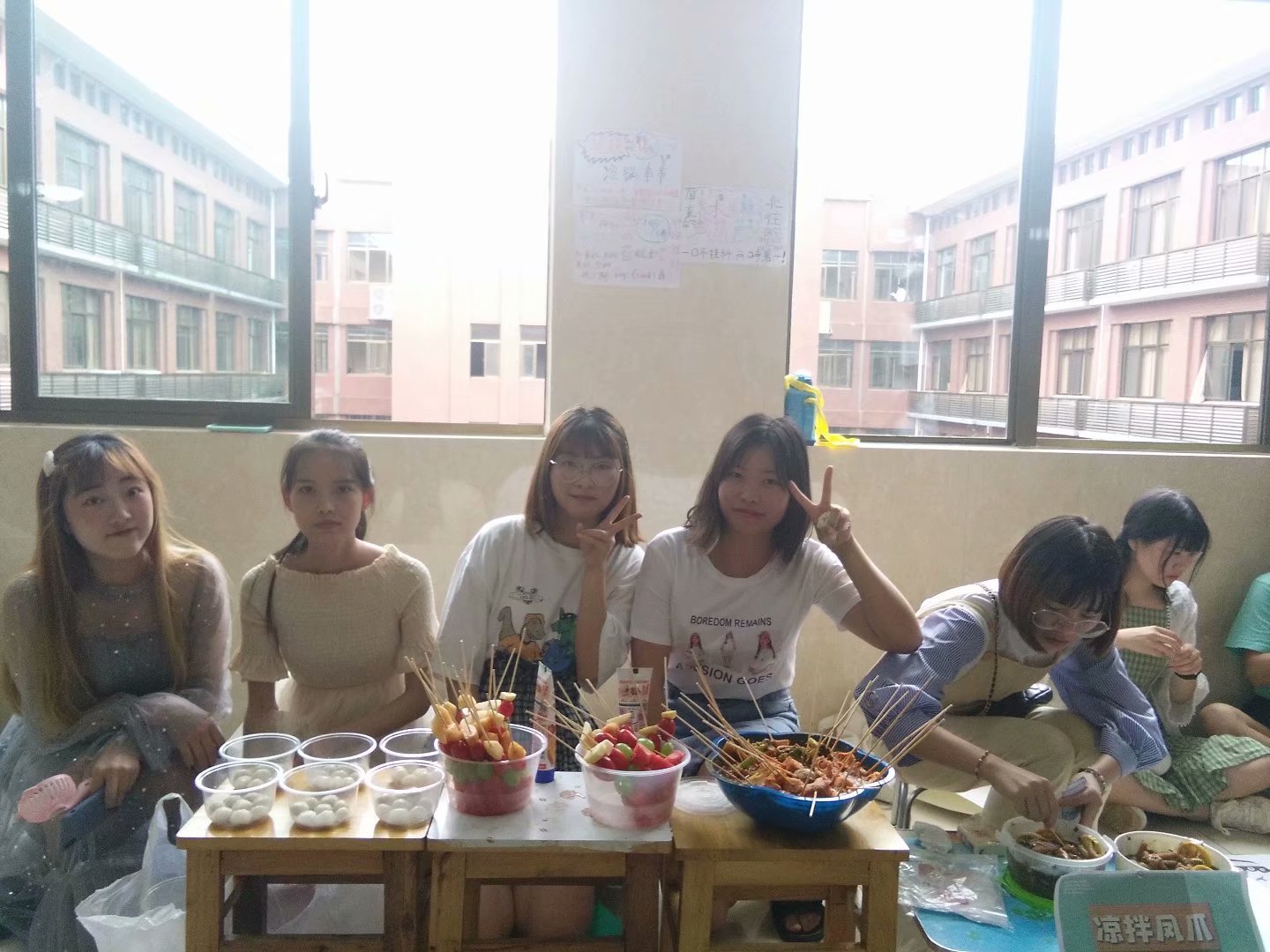 往里走可以看到不少同学带上了自制的干吃汤圆、水果糖葫芦、凉拌凤爪、茶叶蛋、藕粉、绿豆饼和冰凉粉,一份只需一张券,让参会的所有师生都一饱口福;