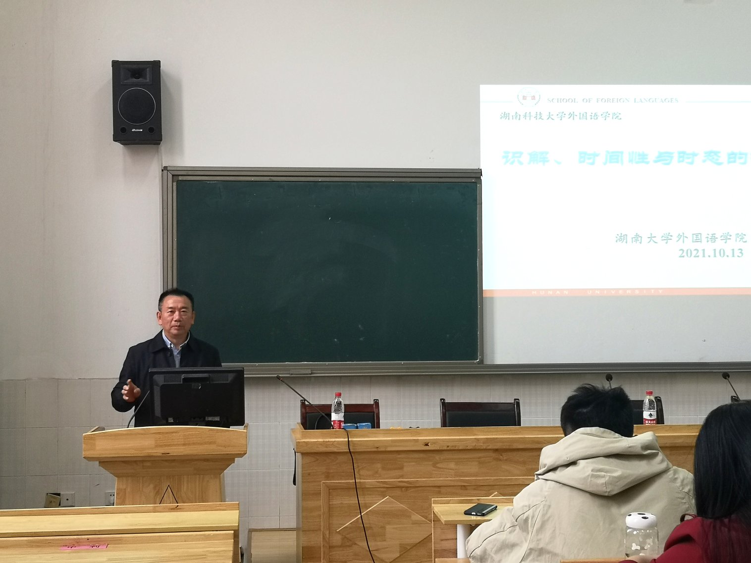 为提升研究生的学术意识,增强研究生的学术能力。10月13日下午4:00,永利3044noc诚邀中国英汉语比较研究会常务理事和中国英汉语比较研究会认知语言学专业委员会副会长——刘正光教授,为师生们带来题为“识解、时间性与时态的指称陈述转换”的学术讲座。本次讲座由永利3044noc经理张景华教授主持,永利3044noc副经理吕爱晶教授和曾建松副教授以及2020级和2021级全体研究生与部分青年教师代表参加了本次讲座。
