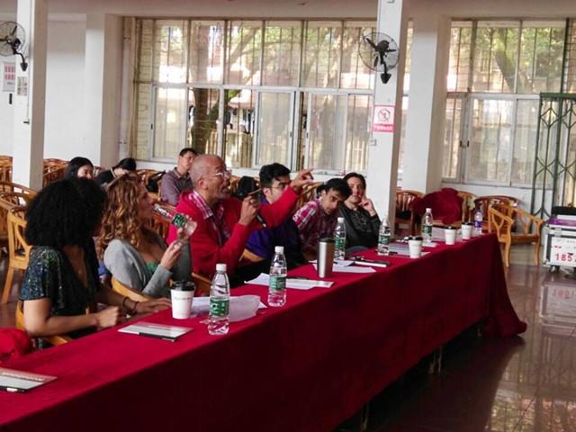 号,剧组成员在校员工活动中心观看并指导了外院员工排演的该话剧。他们热心地回答了员工的提问,分享了戏剧演出、对角色的理解等心得,对员工的投入与表演给予了高度的评价,该剧导演道格拉斯称赞到:“你们能表演该话剧,让我们感到十分荣幸,你们的演出真的很棒!”