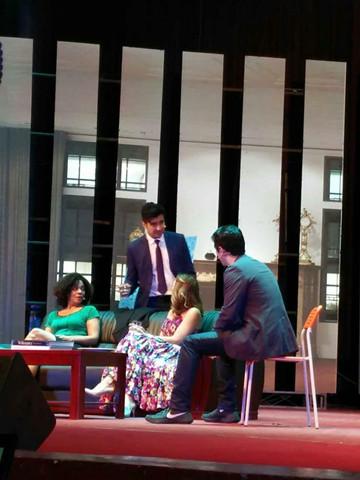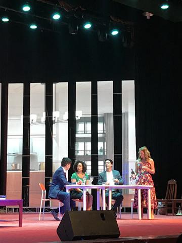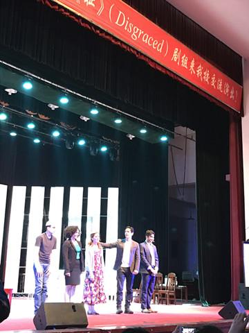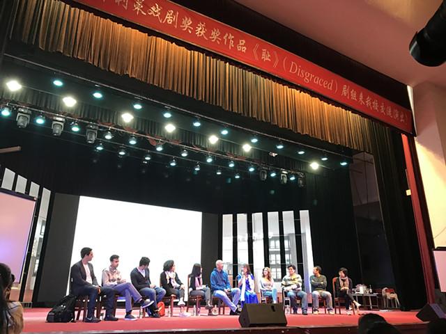 年获美国话剧和音乐剧最高奖“托尼奖”提名奖等多项殊荣,其所探讨的族裔、文化、宗教等问题引起了人们广泛的关注和热烈的讨论。在观剧现场,演员们惟妙惟肖的表演不但博得了师生们热烈的掌声与喝彩,他们因种族、民族、宗教的差异所呈现出的文化冲突与碰撞也引发了师生们的思考。表演完后的“观后谈”环节在热烈友好的气氛中进行。曾艳钰教授、廖君湘教授和湖大影视艺术表演系的何昆达教授与师生们一道就该剧的主题、表演形式、情节、文化冲突等问题与该剧的导演和演员进行了广泛的交流,现场的气氛再次到达了高潮。
