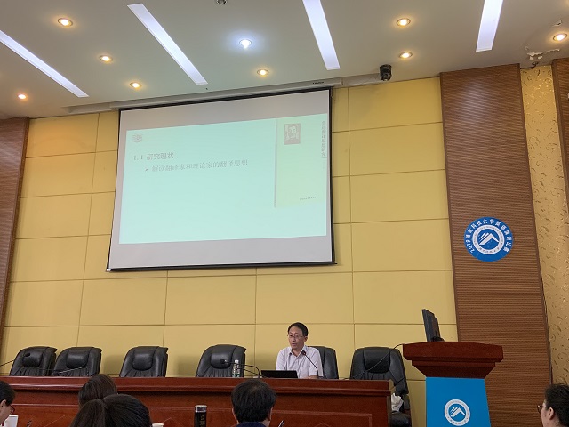 黄教授以一曲湖南名歌《浏阳河》开始讲座,他认为大家应学会发现当地的特色文化,为论文与课题寻找切入点。黄教授从四个方面讲授了为何“研究生,自己研究自己生”。首先,就翻译思想,黄教授指出,做翻译研究要认真解读翻译家和理论家的翻译思想并梳理一定时期翻译思想的发展历程,为今后的研究做铺垫。对于翻译思想,不同的学者有不同的见解,对此范教授提出翻译思想可以从狭义和广义两个方面进行定义。广义上的翻译思想可以是某一时期、某一地域偶以某个人为代表的对翻译的理性认识,受时代限制,同时又可为该时代集体思想价值的体现,上升为一种翻译是思潮。狭义上的翻译思想特指个人从翻译实践中通过分析、判断与推理而形成的对翻译现象、本质以规律的思考结果,可进一步系统化为翻译理论。