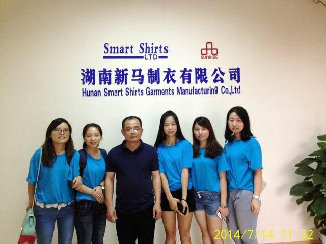 上午,翻译团队来到新马,由人事部职员梁先生为我们介绍了公司的基本情况,部门的设置、对职员的要求,对翻译人才的需求量等情况。随后,梁先生又带领我们参观了从松布到包装的完整制衣流程。翻译团队成员全程都怀着激动与好奇的心情,积极发问,感叹制衣生产的过程。随后,我们与公司跟单处主任沟通,获得我们实践所需要的相关材料。