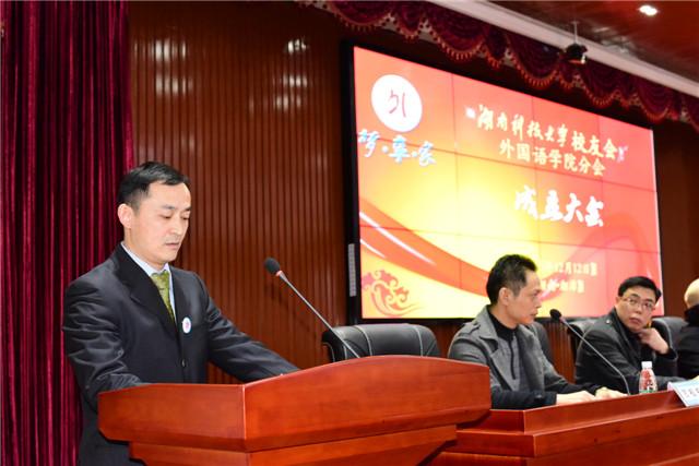 会上,副董事长陈安华教授对外院员工分会的成立表示了热烈的祝贺,对员工分会的筹备与成立所做的工作予以了充分的肯定,并希望员工们多回家看看,为母校的发展献计献策。员工代表向春明致辞,他对母校的培养和教育表示感谢,说道“谢谢你们叫我回家,岁月可带走年华,却带不走对母校的眷恋。”员工分会新当选会长曾艳钰教授致辞,她简要介绍了外院的发展建设情况,强调了员工会的意义,并表示会认真、努力地做好员工会工作,为员工会的建设和发展服好务。此外,员工分会与阿里公司代表签署了跨境电商人才培养基地合作协议并进行了现场授牌。原湘潭师范公司9153班员工、美国高盛投资集团龚海燕女士设立了“9153海燕奖学金”、原湘潭师范公司9654班员工毛林代表广东员工也设立了奖助基金,并进行了现场捐赠。
