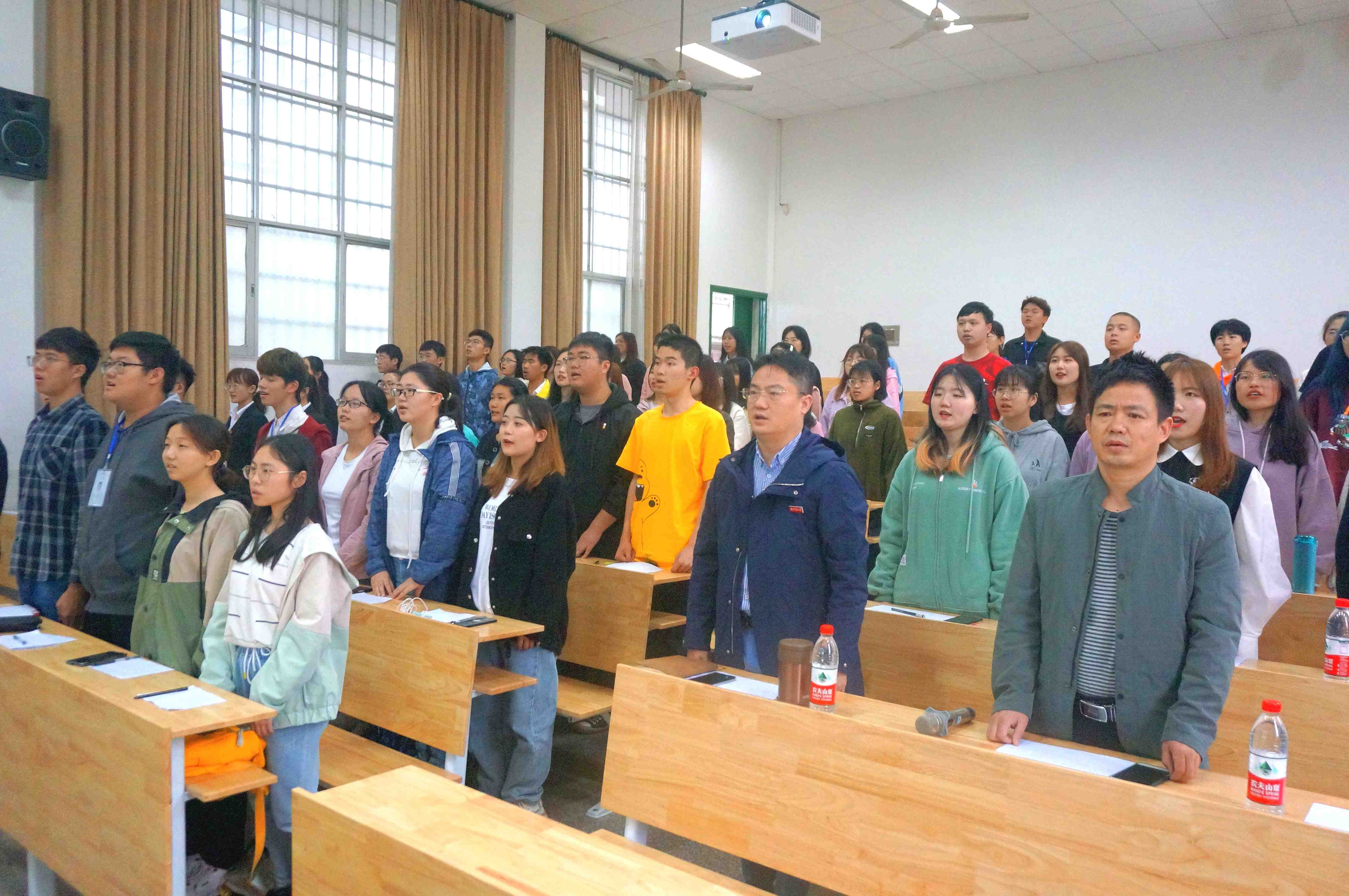 在庄严的国歌奏唱声中,大会正式拉开帷幕。党委副书记龙赢致开幕词,龙赢书记就公司的情况,从过去、现在、未来三个方面开展了讲话。回顾过去,成绩很大:他表示过去在公司师生的一致努力下,公司在学风建设和队伍建设等方面取得了喜人的成绩;着眼现在,困难很大:他从工作理念和品牌建设等方面,提出了外院现在面临的问题;放眼未来,希望很大:他根据外院现有的团队力量和公司学风建设的发展趋势,谈到外院具有足够的发展潜力,有希望开创更好的未来。讲话最后,他表达了对上一届团委员工会的感谢,以及对下一届团委员工会的殷切希望。