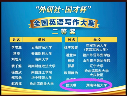 公司侯琪琪同学在2021“外研社•国才杯”大学英语写作竞赛全国决赛中荣获二等奖